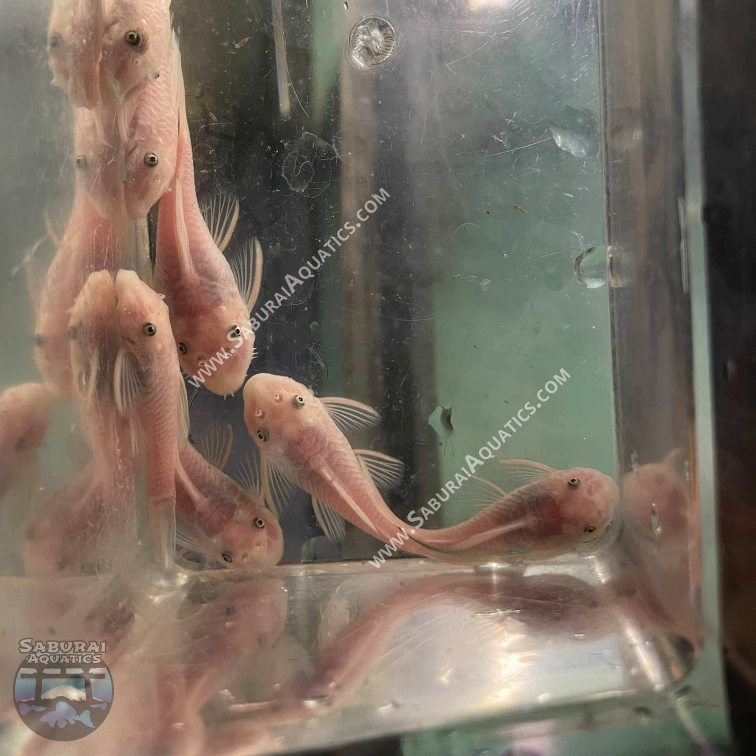 Notes - The Short Fin Snow White Bristlenose is the newest bristlenose color variant. This color variant is a gene mutation that results in a leucistic color pattern. A beautiful white body with a pink hue, this fish makes an amazing addition to any tank.